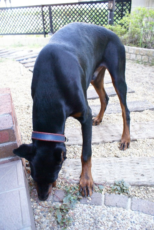 赤ちゃんが誕生してから大きい体のグート君をついつい皆と同じように扱ってしまうけど、グートは今月13日で8ヶ月目に突入したお子ちゃまです!末っ子の特権で私からの愛情を独り占め出来る時間が与えられていたけど、赤ちゃんが誕生してからは甘える時間がグンと減ってしまい不満が募るばかりらしい^^;赤ちゃんが誕生して数日後に私の携帯を破壊した!私が何かと赤ちゃんルームに篭ってしまうんで寂しさが爆発したみたい;_;暫くはノワママと赤ちゃんだけの静かな時間を与えるため篭ってしまうことが減っていたので、グートもいつものようにダラ~ンと横で甘えていられたけど、最近離乳食が始まり赤ちゃんの食欲が日増しに増えてきたから篭ってしまう時間も前よりも増えてしまった・・・・そしたらグートの寂しさが又々爆発したみたい;o;どうやって取ったの?と不思議でならない棚の物をゲットして床にばら撒いていた;O;