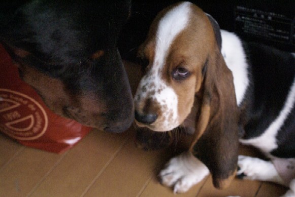 バセットハウンドは甘えたで、特にシェリーはノワとロイの子供なので、もうすぐしたらママ~ママって後ばかり追いかけてくる超甘えたさんになりますよ!*^^*