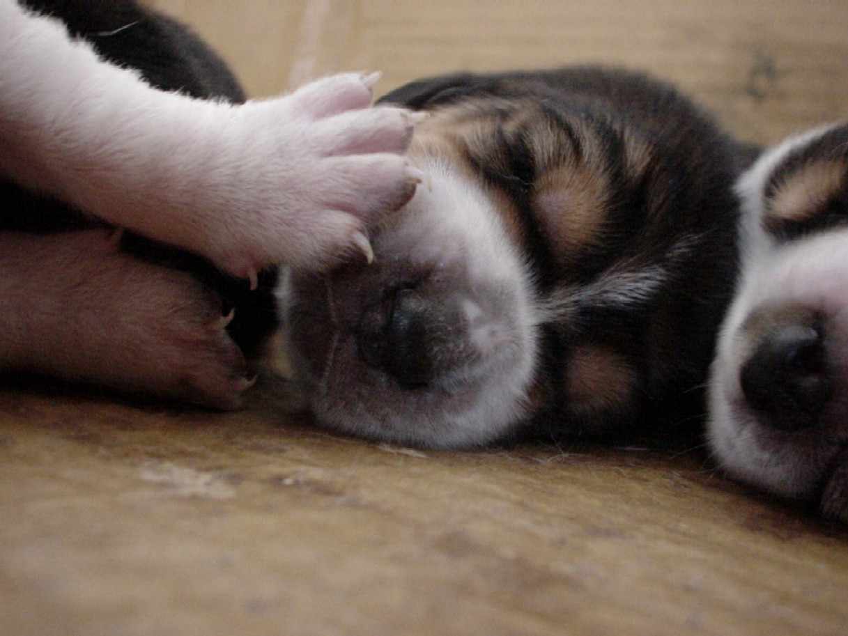 今日で生後12日目の赤ちゃん達の目はまだ開きませんが、顔とかが犬らしくなってきました!体を指でコチョコチョしたら一丁前に足で掻く動作をゆっくりします。起きている時はピーピーと泣くのに寝言では「ワン」という不思議な赤ちゃん達です。