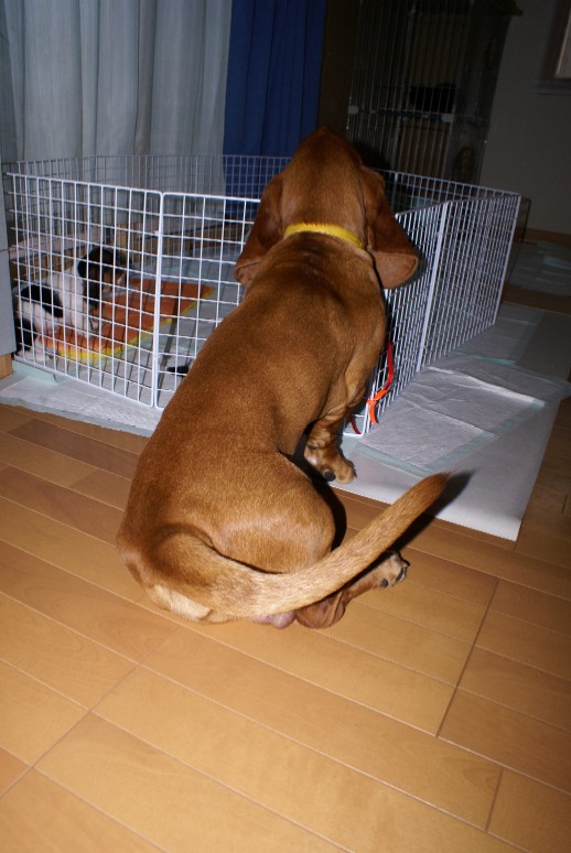 待ち望んでいた我がことの対面が突然起きたことに狂ったように喜ぶロイ父ちゃん゜*。(*´Д`)。*° あまりの喜びようで尻尾がスポ~ンと飛んでいくかと思いました(´∀`;A怒りに狂っているのでは?!とノワママを見ると何事もなかったようにシレ~っと毛づくろいをしておりました(ノc_,・;)アハハ・・・お手製のサークルに赤ちゃん達を入れるとロイ父ちゃんは暫くサークルの前から離れずに、ずーっと赤ちゃん達を見つめておりました*^^*いや~ぁ何事もなくて本当に良かった良かった♪
